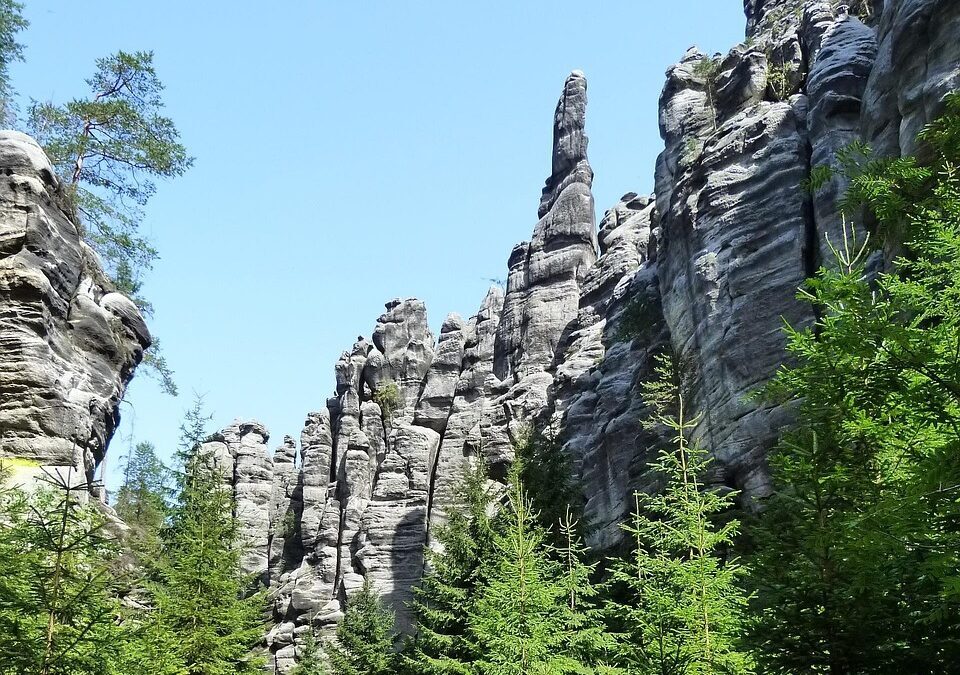 Explore the labyrinths of rock formations in the Adršpach-Teplice Rocks, located just across the border in the Czech Republic.